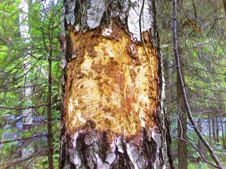 - Деревья окружает большое число птиц, а именно дятлов. Ни для кого не секрет, что дятлы, почуяв в дереве насекомое, начинают клевать ствол, образуя в нем многочисленные отверстия. Если в дереве есть короед, то на него будут слетаться дятлы, которые всеми силами будут пытаться уничтожить насекомое.
